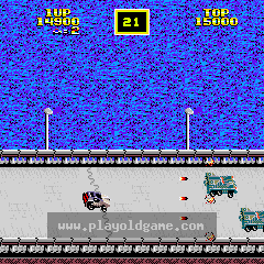 The game's levels force-scroll from right to left, although the vehicle's speed - and rate of scrolling - can be slowed down and speeded up to some degree. As well as a forward-firing gun, the car can be made to jump huge distances. This is necessary to avoid background obstacles such as rock falls and broken bridges. It can also be used to avoid incoming enemy fire and vehicles. Land mines also litter the levels and need to be shot or avoided.