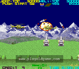 最初我看台式机上写的是“蚕式飞弹”,还是小南街卤肥肠那家,后来青苹果旁边的游戏室也有了。这游戏的投币声很刺耳跟《捉虫敢死队》一样。玩的最好的是两个人,我只认得其中一个叫什么仁。双打打到后面的管道了。这个游戏如果单打,要选吉普车才打得远,相对轻松点。这游戏节奏较快,特点是,你不能冲到前面去,那样敌人会从后面出来。后来江也喜欢玩,玩的还可以,玩得好不好,要看吉普车的背枪溜不溜