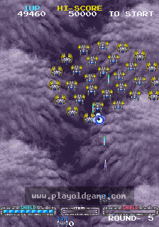 Export version of "Majestic Twelve - The Space Invaders Part IV". The third sequel to Taito's seminal "Space Invaders", Majestic Twelve leaves the classic Invaders game-play intact, but adds a slew of new alien invaders and power-ups to the mix. This, together with the vastly improved graphics that introduce colorful new backdrops - some of which scroll vertically in a similar fashion to the star-field in Namco's "Galaxian" - ensure that Majestic 12 is a worthy sequel to the legendary original.