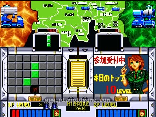 If a shape is formed on top of a missile block, the missile is launched and and either collides with a missile of the opponent or with the launcher vehicle itself. The player needs to strategize to move the shape in a certain direction to cover as many missiles as possible.