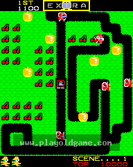 Mr. Do! is a colourful and addictive maze game in which the player takes on the role of the eponymous Mr. Do, a circus clown, who must clear each level of either cherries or monsters. The game's single screen levels are made up of tunnels surrounded by a colourful, soil-like substance. This soil can be dug through to create new tunnels, allowing Mr. Do to escape his enemies and to reach the many cherries that litter the levels. A number of apples are also scattered around each level, and Mr. Do can push them along tunnels (to block and/or kill monsters) or can tunnel beneath them to drop them onto the heads of any pursuing enemies. Mr. Do himself can also be killed by a falling apple.