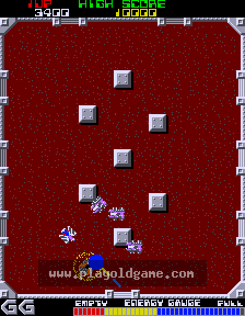 Grobda is a spin-off from Xevious, as the titular tank was originally an enemy in that game. The player takes control of the eponymous Grobda tank in an arena filled with numerous indestructible obstacles and several enemy tanks. When an enemy tank is killed, it will cause an explosion which can destroy other tanks as well as the player if positioned in the blast radius at the time. There is a shield that offers temporary protection from enemy fire, but constant firing from enemies will make it disappear. The game consists of 99 rounds, called "battlings".