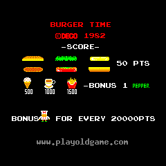 The player is chef Peter Pepper, who must walk over hamburger ingredients located across a maze of platforms while avoiding pursuing characters. The game's original Japanese title, Hamburger , was changed to BurgerTime before its introduction to the United States.