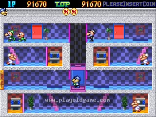 Each level is populated with enemy scientists and agents, and any contact with these will result in the loss of a life. To help combat this, players are armed with a 'stun gun' which will knock the enemy to the floor, allowing the player to pass. If an enemy is held in the stun gun's beam for several seconds, the enemy will fall to the platform below.