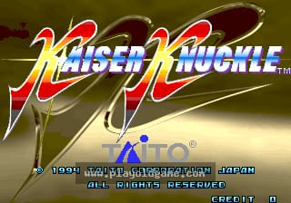 Kaiser Knuckle follows the same fighting game conventions established by Street Fighter II. The player's character fights against his or her opponent in best two-out-of-three matches in a single player tournament mode with the computer or against another human player. The player has a character roster of nine fighters to choose from, and three bosses, each with their own unique fighting style and special techniques. The control layout is set to the six-button standard (a la most Capcom fighting games), but it can be switched to a five-button layout via dip settings. One unique feature is that Kaiser Knuckle was the first and only fighting game that has five strengths of basic attacks.