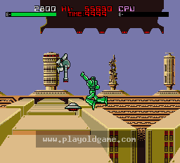 The player pilots his robot around the screen destroying enemy robots using punches and kicks. Flying saucers can be destroyed for a life energy boost. Items in the background can be destroyed for...