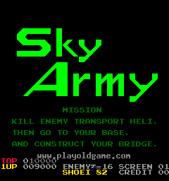 Your city is in war, you must fly your red helicopter on enemy territory your mission is to destroy certain enemy targets, for this you must bomb bridges to stop its construction, kill military and eliminate hordes of blue enemy helicopters and others aircraft, later you fly over by vast areas infested with shellfire and enemy submarines to then help build and defend a bridge to be used for attack and win the war.