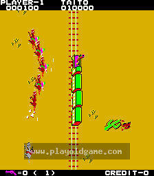 A sheriff on horseback must protect a train, located in the center of the screen, from groups of bandits. Players must avoid running into obstacles, getting shot, or allowing three bandits to board the train. A bonus game is played between rounds.
