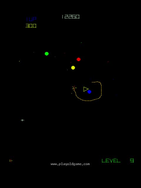 The game features numerous particle types that must be encircled and destroyed or avoided. First, there are nuclei around which electrons orbit. When a nucleus is encircled (snared) and explodes, the Electrons change into Positrons which, if they are encircled before flying off the screen, are worth extra points.