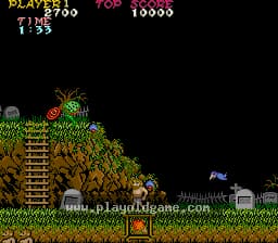 Ghosts 'n Goblins is a platform game where the player controls a knight, named Sir Arthur, who must defeat zombies, ogres, demons, cyclops, dragons and other monsters in order to rescue Princess Prin Prin, who has been kidnapped by Satan, king of Demon World. Along the way the player can pick up new weapons, bonuses and extra suits of armor that can help in this task.