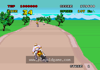 Enduro Racer is an off-road racing game in which players ride a dirt bike across five extremely hilly and twisting courses. Each course is littered with logs, rocks, trees and rival racers that must be either jumped over or avoided.