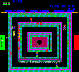 Agent X, complete with trenchcoat, Bogie hat, and briefcase, hurries through a series of adventures and misadventures to retrieve stolen plans and destroy dastardly Dr. Boom's subterranean bomb factory. Our masked hero descends to the depths of Dr. Boom's laboratory in a special elevator. On each floor he encounters a series of conveyor belts that are...