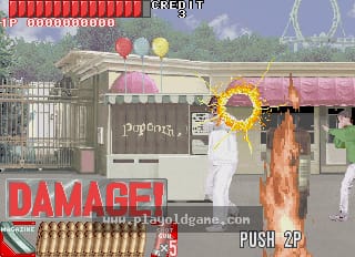 Hoping to compete with Konami's "Lethal Enforcers". this Taito light gun shoot 'em-up has players assuming the role of a special operatives police officer against a vicious gang who's taken over various neighbourhoods, a convenience store, and even an amusement park.