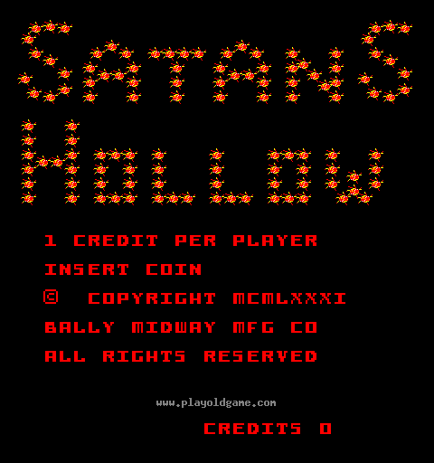 Satan's Hollow is a 1- or a 2-player game. When playing this game, the Rocket Launcher is under YOUR control. YOU make it move back and forth across the screen to launch Rockets that will eliminate your attackers. These attackers are displayed in groups, called 'racks', across the top of the screen. The first rack is made up of a small number of attackers. The second rack is made up of a larger number of these attackers. And intermixed with the racks of attackers is a rack with only a single fire-breathing Devil's head.