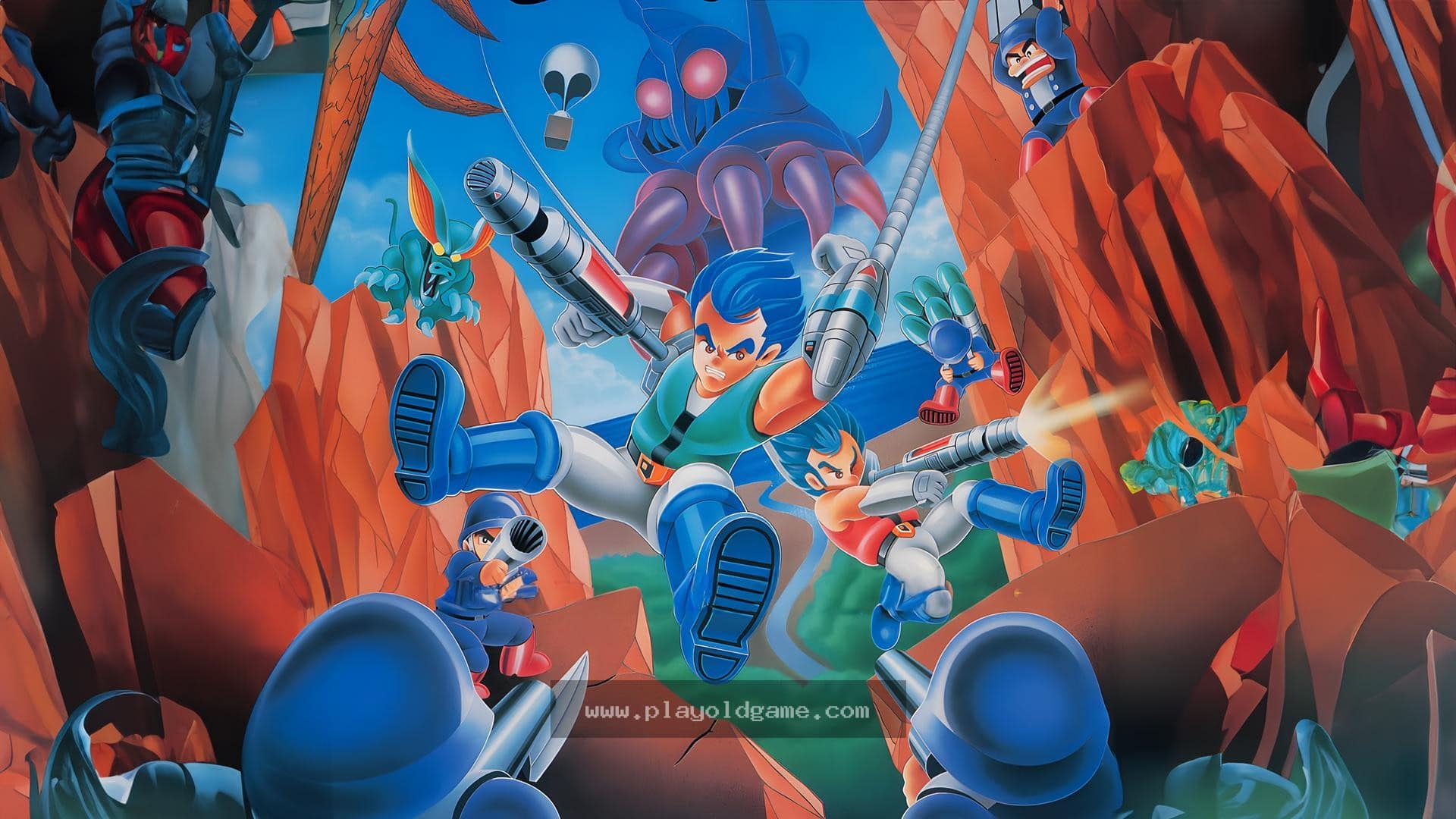 Bionic Commando is a scrolling platform shoot-em-up set ten years after the end of World War III, with the player taking on the role of 'Super Joe'; an elite Commando tasked with infiltrating the enemy's heavily defended military base to discover their secrets plans and destroy their missile silos.