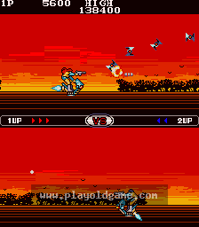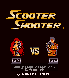 Scooter Shooter is a 2D arcade side scrolling shooter with split-screen. Players fly on special scooters and compete against each other (the player can play against CPU or the second player) - they start on the opposite end of map, and go towards the center. They must kill various enemies on road.