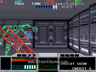 As a member of a special Search And Rescue unit. you (and an optional friend) are told to investigate an S.O.S. distress signal that was sent from a space station. what you don't know is that a group of vicious aliens have taken the colonists hostage. luckily for you, you're armed with a plasma pulse gun and four sets of grenades that are quite special (aside from the common grenade that explodes, some will freeze, incinerate, and even slice and dice the aliens).
