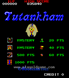 Inside King Tut's tomb are treasures beyond your wildest dreams. They can be yours... if you dare to take them. Supernatural creatures roam the mazes of the tomb guarding the treasures at all costs. Your only defenses against them are your laser gun... and your wits. Blast away, snatch the loot, escape through secret passageway before it's too late! And when you see a key, take that, too. It will unlock the door to the next chamber and the next adventure. Enter King Tut's tomb and see what awaits you... if you dare.