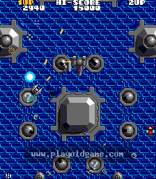 The player controls a space ship in eight directions through four different overhead view stages, and is able to shoot in the direction the space ship faces. The space ship drop bombs vertically above the ship and the player can pick up power-ups that enhance the ship weapons, as well as attach options that fire in a direction depending on where the option...