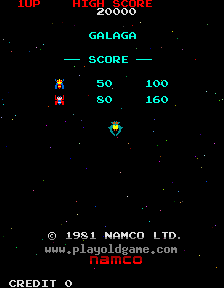 Galaga is a single-screen shoot-em-up in which the player controls a 'Fighter' spaceship and must defend the home planet against the on-coming hordes of alien invaders called "Galagans". The Fighter can only move left and right along the bottom of the screen.