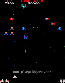 Galagans fly onto the screen in a variety of formations before forming troop lines at...
