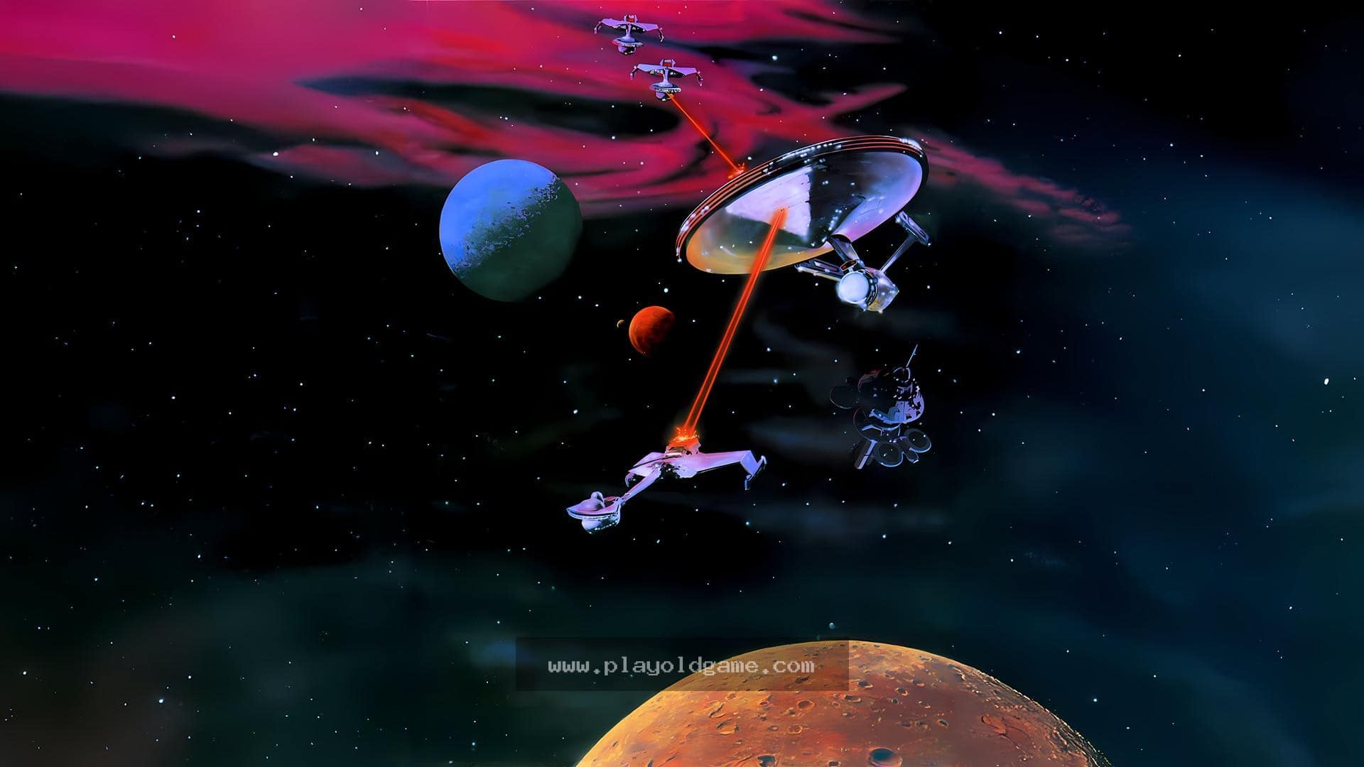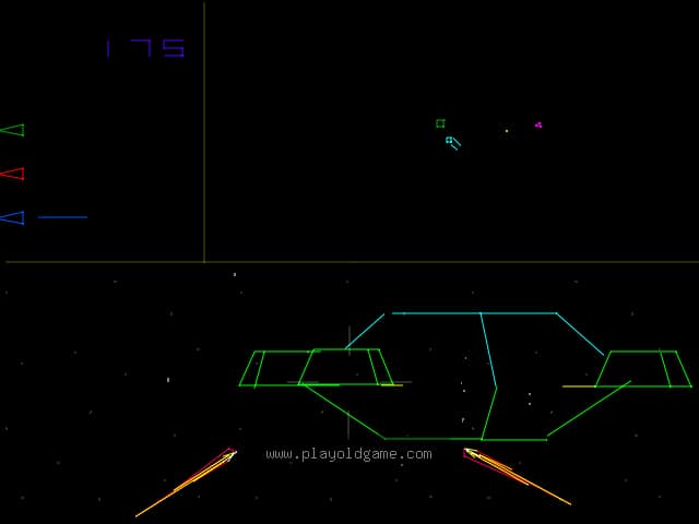 The Scanner is where the player sees a top down or plan view of local space, with the Enterprise always in the center of this screen. The Viewer is where the player sees actual apparent 3-D images, as if he were looking out the ships front window. The Status screen displays player score in addition to Shield strength, number of Photon Torpedoes, and amount of Warp energy remaining.