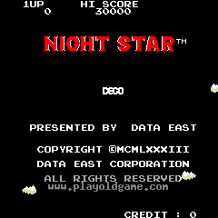 Night Star is a vertical scrolling shoot 'em up in which the player controls a ship tasked with transporting materials to a meeting point to build a base. On the way to the goal, the player must fight against a series of enemies and be equipped with a fast forward-firing weapon. By rescuing lost astronauts, the ship's gun is upgraded with a powerful...
