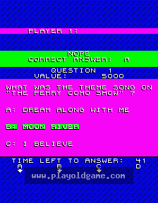 Trivia Master (c) 1985 Enerdyne Technologies. - TECHNICAL - Main CPU : Z80 (@ 1.5 Mhz) Sound Chips : TMS36XX (@ 0.35 Khz), Custom (@ 0.35 Khz) Screen orientation : Vertical Video resolution : 224 x 288 pixels Screen refresh : 60.00 Hz Palette colors :