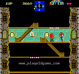 Once you've destroyed all the crystal balls, the haunted house starts falling apart, and you must run for your life towards the exit to win the stage. You can transform into a super hero, entering through the flashing door to grab special items.