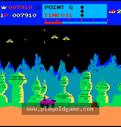 玩家操作一辆月球车在月球表面行驶,试图避开或摧毁路径上的任何障碍物,包括陨石坑、岩石和地雷。UFO会从空中攻击月球车,投下炸弹,一些UFO炸弹在落地时会形成新的陨石坑,产生新的障碍物需要避开。