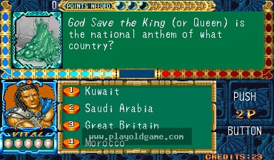 [CPS1]龙之谜题[CPS1]龙之谜题Play Game游戏简介玩法类似桌游:掷出预定骰子在棋盘上移动至多六格;若路口有分支,有时可自选落点。落地后要回答一系列问题(题量随进度增加)才能再次掷骰。答题限时,答对得分依速度浮动。答对则敌人头像上方的球体点亮一格;答错扣一命。命尽则须限时续关,否则游戏结束。名称:qad类型:Quiz年份:1992开发:Capcom发行:Capcom版本: 外文名:Quiz And Dragons - Capcom Quiz Game玩家数:1-2介质: 支持数: 语言: 版本信息: 克隆自:0满分20:14文件大小: 游戏标签暂无分类ArcadeCPS1游戏截图老油腻[Arc]丛林之王[Arc]生存艺术[Arc]俄罗斯方块绝对特级大师2[Arc]太空定位战[Arc]轮滑狂飙[Arc]最佳联赛[Arc]1942[Arc]最终手段