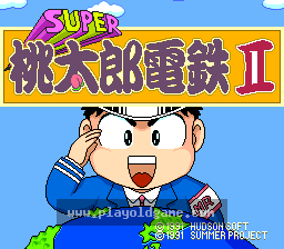 Super Momotarou Dentetsu II is the second "Super" game in the long-running Momotarou Dentetsu series and the third overall. It was the first game in the series to be released on the Super Famicom: both Momotarou Dentetsu and Super Momotarou Dentetsu were Famicom games (though the latter was also released on the PC Engine and Game Boy, like Dentetsu II).