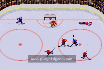 After a dramatic close-up of the face-off, actual game play is seen from a top-down perspective with a vertically scrolling field. Every player (including the goalie) can be controlled. On offense, quick shots, slap shots and even faked slap shots are possible. On defense, body checking an opposing player can lead to a special fight sequence.