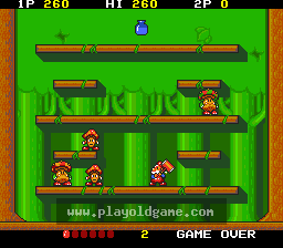 Don Doko Don is a Japanese action platformer first developed and published for arcades by Taito in 1989. One or two players control bearded dwarves as they make their way through fifty platforming and puzzle-like levels in an attempt to save their kidnapped girlfriend.