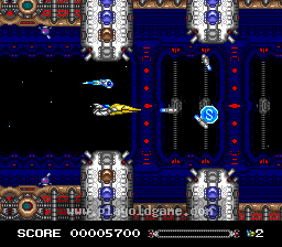 This game has large enemy sprites and large boss characters. The levels take place mostly in outer space and alien environments. Some of the sprites are Macross-like mechs.