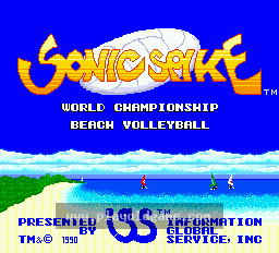 Sonic Spike is a beach volleyball game. The player takes the role of a volleyball team with two athletes (which have different strengths and disadvantages) and tries to win a tournament. The second athlete can also be played by a second human player. The controls offer no surprises: players move an athlete over the field and use two buttons for jumping and hitting. Single players also have to switch between the two athletes.