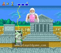 The Altered Beast title refers to your shapeshifting abilities. In this platformer, you can collect spirit balls by defeating two-headed wolves, allowing you to mutate into different beasts such as a werewolf, a dragon, a tiger, a bear and others depending on the version. Each form, tied to a level, comes with special abilities such as flight and powerful attacks, easily superseding the basic set of punches and kicks in your human form.