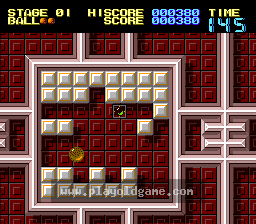 The labyrinths not only contain harmless, destructible blocks, but also increasingly difficult hazards. If the sphere or your control unit hit a skull symbol, one of your nine lives is lost. Teleporters exchange the position of you and the ball, wall pieces can be pushed around or destroyed by your unit, floor tiles will grow into walls when you pass over them too often. The high game speed can be slowed down by holding the space key – a very useful option in tricky situations.