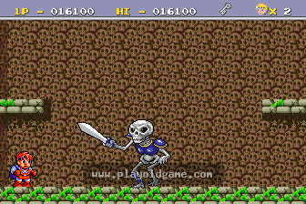 Getting power-ups will make the fireball soon increase to a bouncing fireball, which will deal more damage to enemies. Treasure chests can be busted open, allowing Tommy to collect coins. Tommy's journey will have him explore ruins, cliffs, statues, dungeons, and finally the castle. At the end of each level, there is a boss that must be defeated in order to proceed to the next stage.